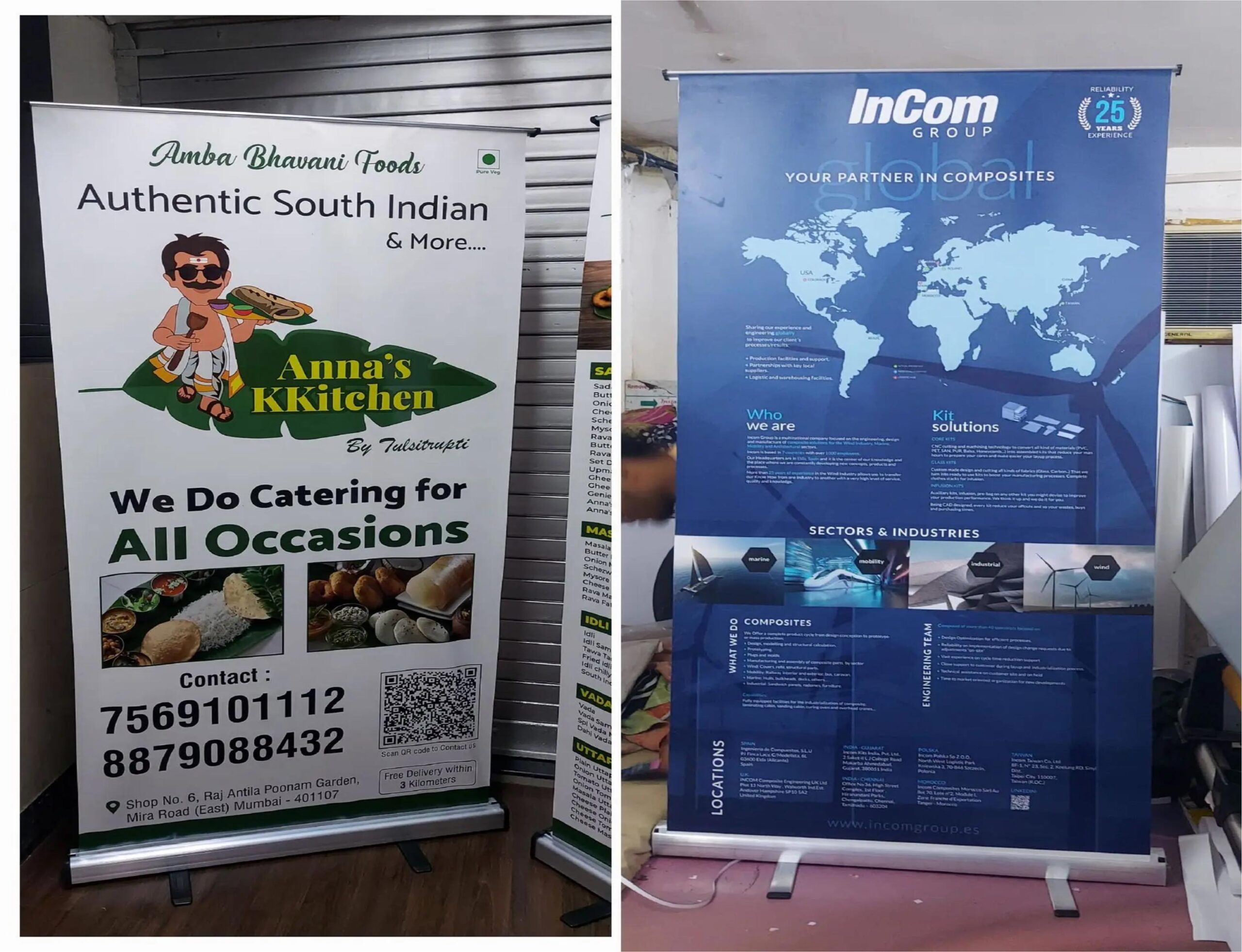 A roll-up standee, also known as a roll-up banner or retractable banner stand, is a portable display system commonly used for promotional and advertising purposes. It consists of a graphic panel that is rolled up inside a sturdy base.